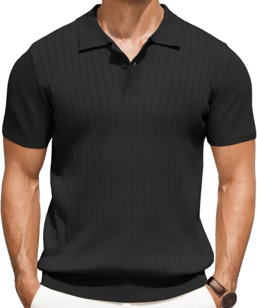 Men’s Knit Shirts Short Sleeve Ribbed Knitted Shirt Summer Lightweight Casual Golf Shirts