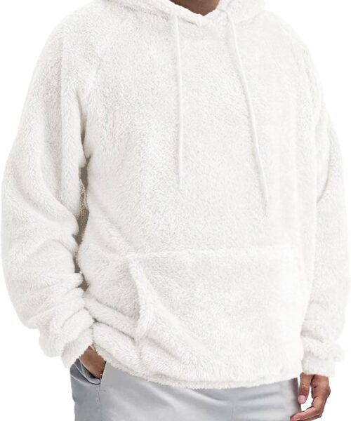 Men’s Fuzzy Sherpa Hoodie Sweatshirt Long Sleeve Fashion Pullover Fall Outwear Winter Hooded