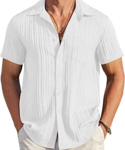 Men’s Casual Button Down Shirts Short Sleeve Textured Summer Beach Shirt with Pocket