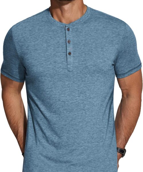 Men’s Henley Shirts Short Sleeve Casual Basic Tee Summer Button Henley Soild T Shirts