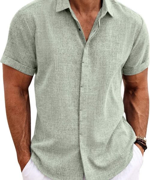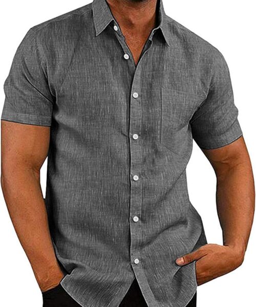 Men’s Casual Button Down Shirts Short Sleeve Linen Shirts Summer Beach Dress Shirt