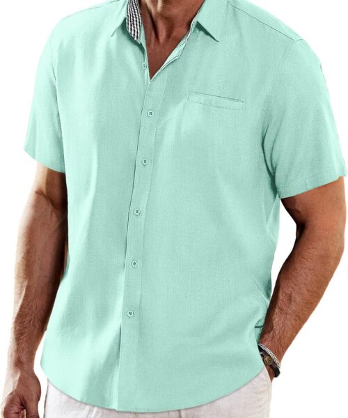 Men’s Casual Linen Shirts Short Sleeve Button Down Shirt Summer Beach Tops