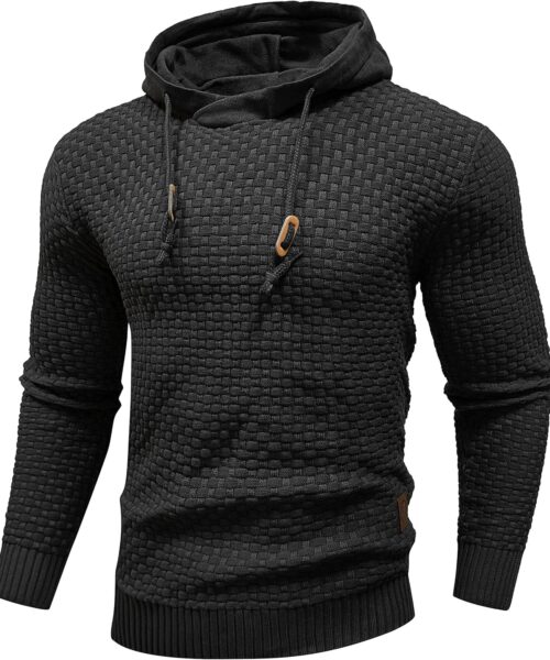 Men’s Hooded Sweatshirt Long Sleeve Solid Knitted Hoodie Pullover Sweater